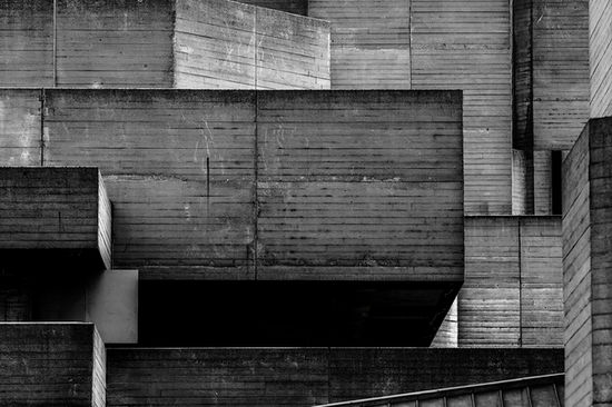 The Royal National Theatre (1976), on London's South Bank of the Thames, which is a Grade II listed building and one of the most notable examples of Brutalist design in the United Kingdom. Architect: Sir Denys Louis Lasdun.